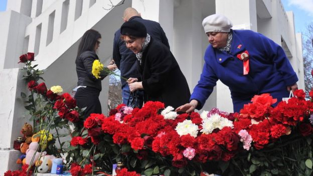 GETTY IMAGESஇந்த விபத்தில் இறந்தவர்களுக்கு மலரஞ்சலி.